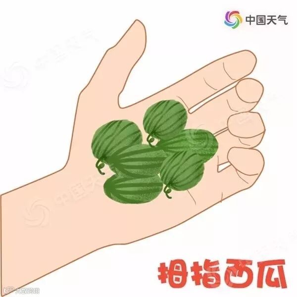 指西瓜,顾名思义这种西瓜的个头非常小,就像人的拇指那么大,妥妥地一口一个。拇指西瓜外表和普通西瓜无异,内瓤为青绿色,不用削皮就可以直接吃,口感如黄瓜般清脆爽口,因为它个头迷你,卖相超萌,迅速上位成为了瓜圈中的“网红”。