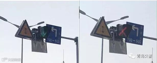”时,延川路北向东左转九水东路车辆允许驶入潮汐车道;当指示灯显示“