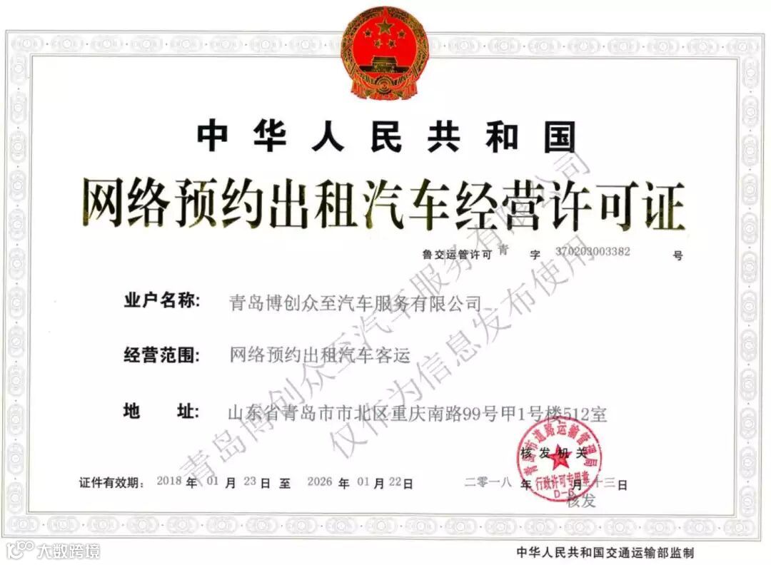 众至用车是青岛本土网约车平台,并获得《青岛网络预约出租汽车经营许可证》,即“网约车拍照”,证件齐全,实力保障。公司团队设立在青岛,在整合本地资源方面有着明显优势,跟全国性网约车平台相比,对司机的服务也是众至的优势,解除您的后顾之忧!