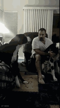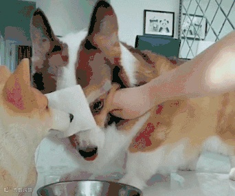 这位主人正在一只狗狗上药,另一只健康的狗狗就不乐意了,也挤到身边表示自己也要。
