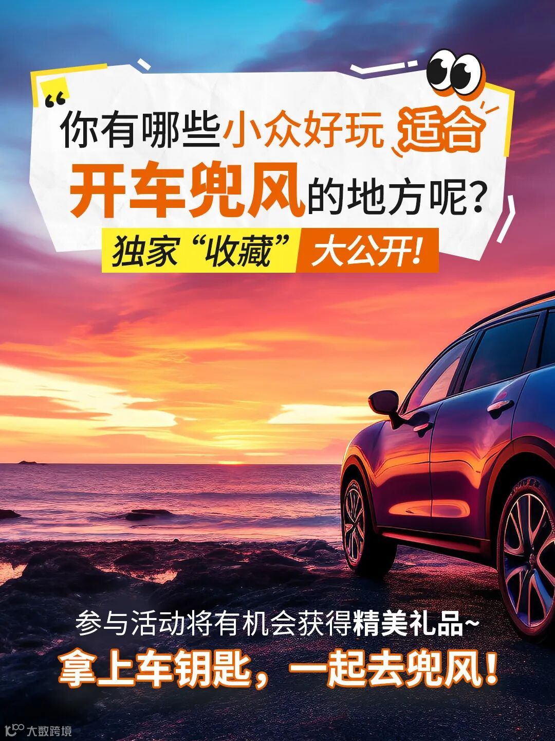 ☑找到最新笔记,在评论区分享你独家收藏的“兜风好地方”,将有机会获得我们的神秘礼品!