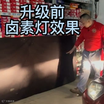 灯光对比:我们将车灯升级前后灯光效果进行了对比,可以看到原车卤素灯是比较暗的,更换的火影者LED车灯,灯光切线是非常完整的,而且非常透亮。