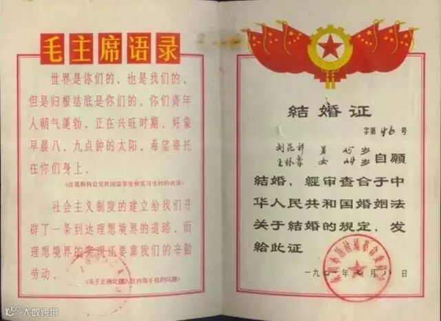 结婚证变迁史 见证爱情