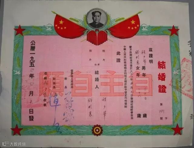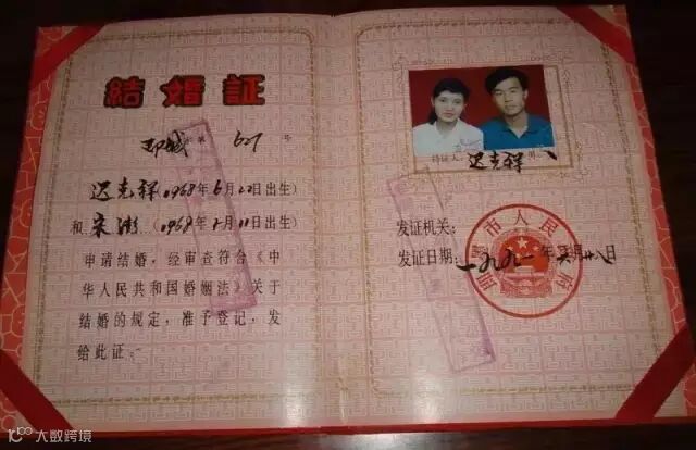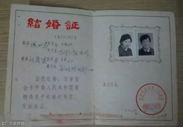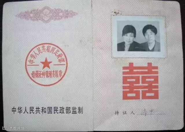 上世纪80年代开始,结婚证书开始贴上新人照片。女左男右,照片大小没有严格规定。