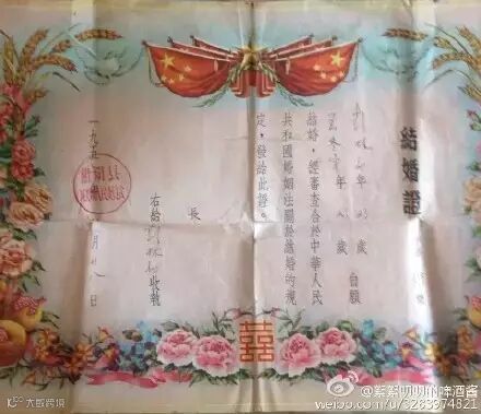 @头上长草的牛:我来晒晒爸妈的结婚证。一纸婚书定终身!