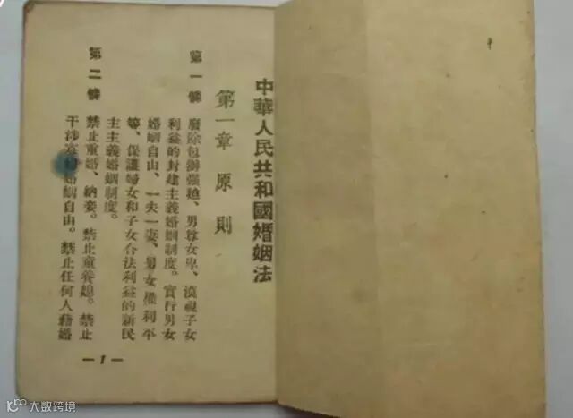 上世纪50年代的结婚证上都刻有一句简洁的口号。跟解放前比,新郎和新娘的名字可以并列在一起。