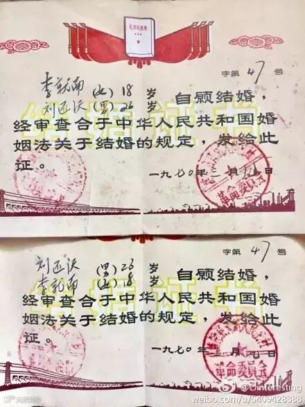@Ctory1:意外翻出爷爷奶奶的结婚证,说到当年结婚的时候,爷爷一脸笑意。