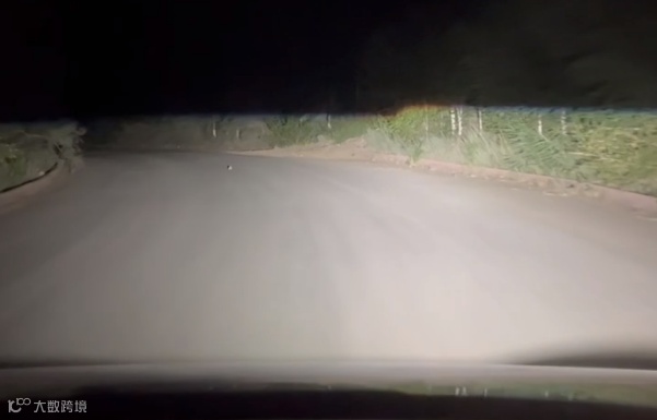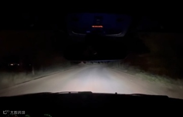 当在没有路灯的野外环境行驶时,只开启近光灯,光源可以铺满整个车道,近光比原来的远光都要亮,切线也非常明显不会造成散光。