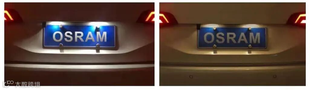 效果对比图:左为欧司朗 右为其他车灯