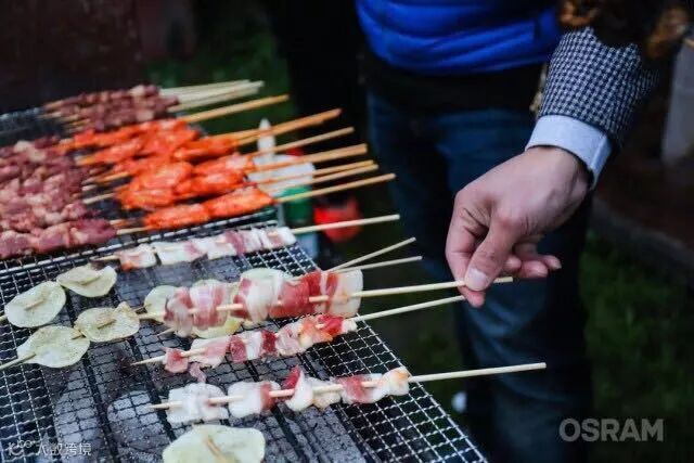 战斗完毕,炉火已经点燃,自助式烧烤晚会开启,大家齐心协力互相帮助,有人更是全场为大家服务,动作娴熟化身烧烤达人。