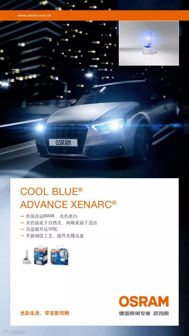 不同的车灯,发出不同的光芒。欧司朗HIDCBA全系列车灯,色温高达6000K,光色明显更白,亮度提升20%。