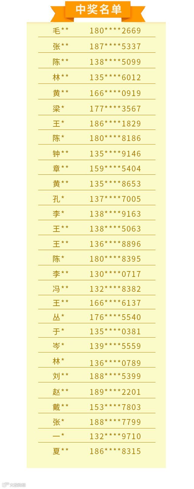 向上滑动查看中奖名单