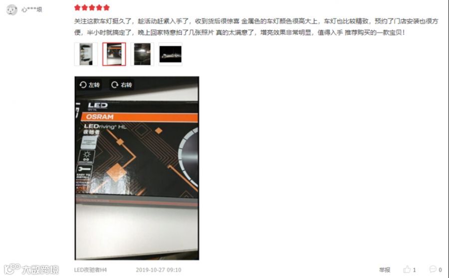 京东下单欧司朗夜驰者LED车灯