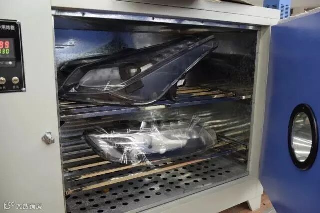 ▲塑封好大灯罩以防磨损,然后放入烤箱加热。