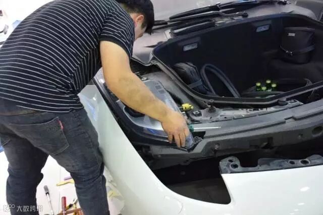 ▲开始施工,准备拆前保险杠 师傅手艺精细,施工过程十分小心。