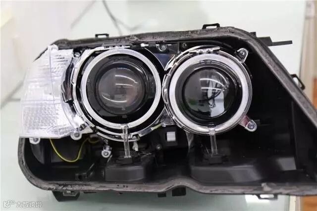 ▲原车是远近一体氙气灯,近光位是博士双光透镜,远光位是前面给大家说的胶片 假透镜,这次改灯是把远光位的假透镜位置改掉。破晓者经过定位、除尘、固定后,4个透镜 看起来非常高大上。
