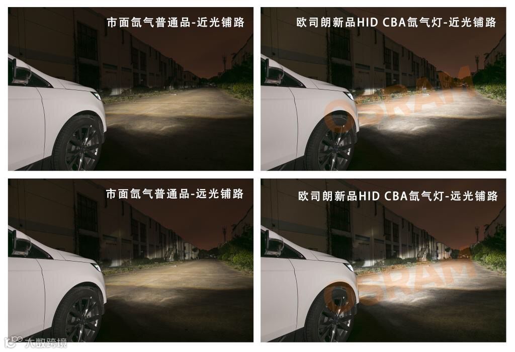 ▲欧司朗HID CBA升级型氙气灯与普通氙灯效果对比
