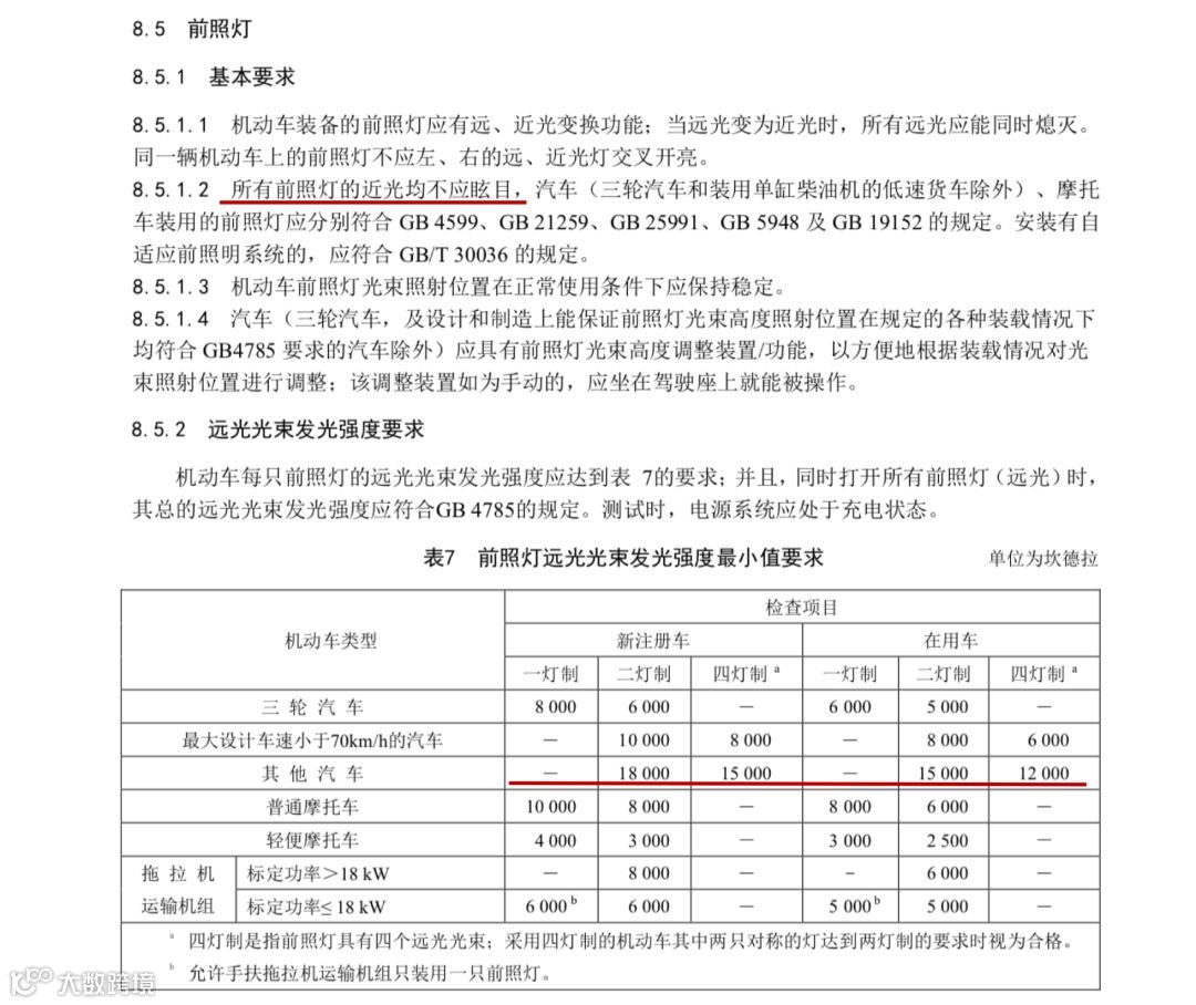 ▲中华人民共和国国家标准 GB7258-2017 《机动车运行安全技术条件》对前照灯的要求