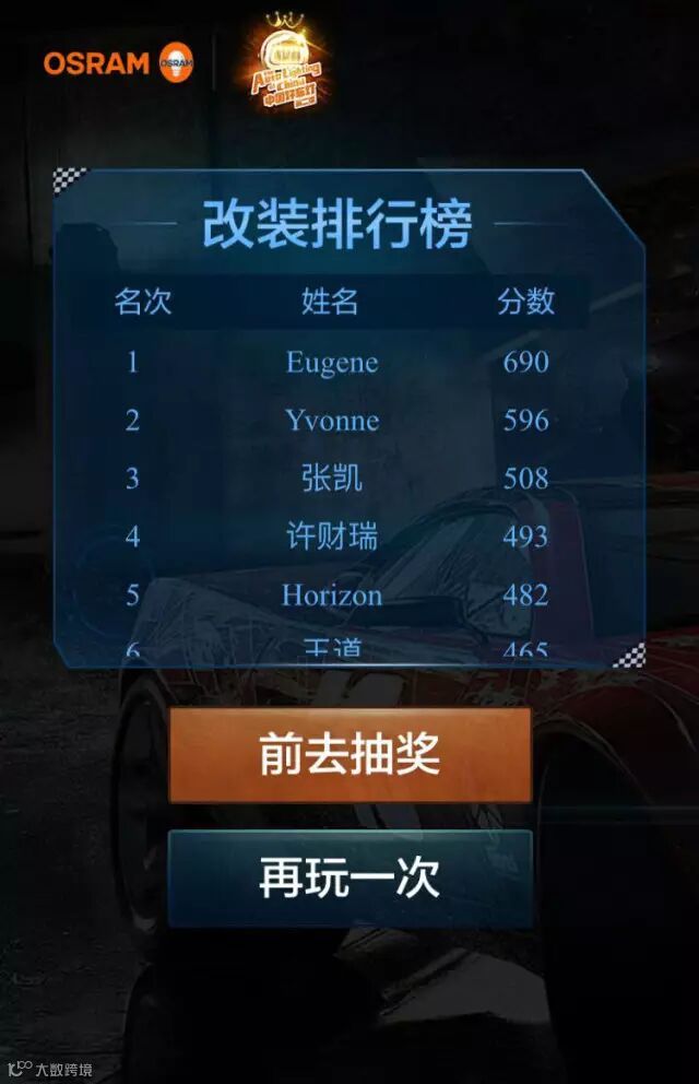 欧司朗改装排行榜的前五名