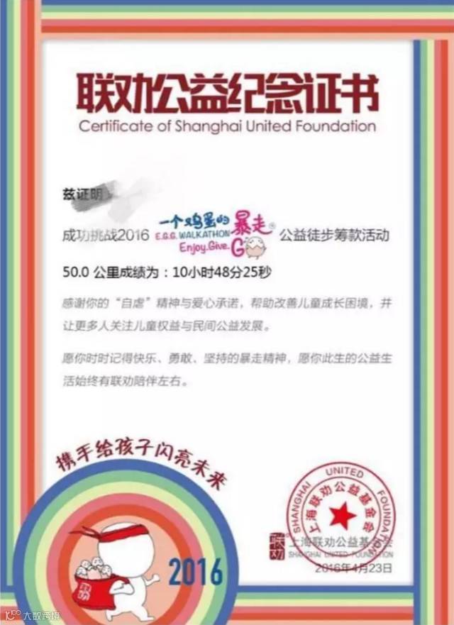 “一个鸡蛋的暴走”是上海联劝公益基金会于2011年发起的公益徒步筹款活动,参与者需要在12小时内走完50km,并通过创意方式募集善款。