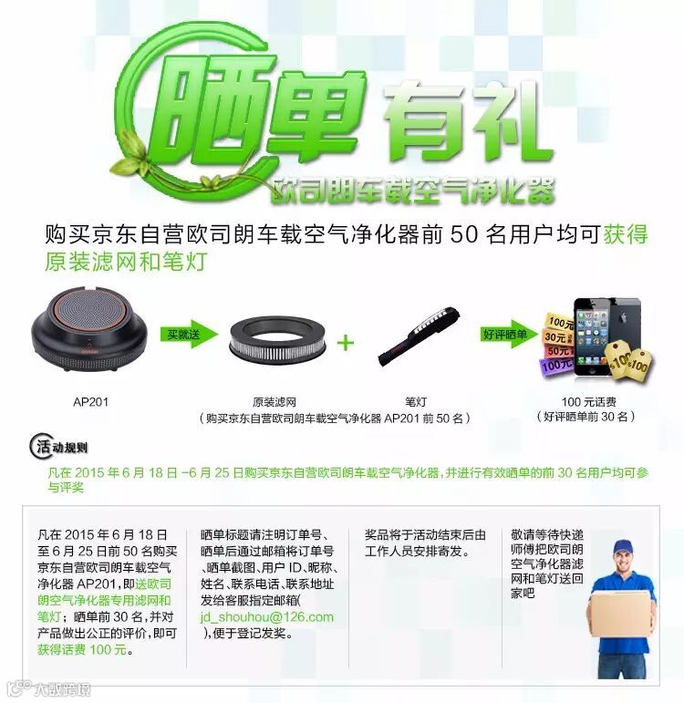 购买京东自营欧司朗车载空气净化器前50名,均可获得原装滤网(价值158元)+笔灯(价值88元)