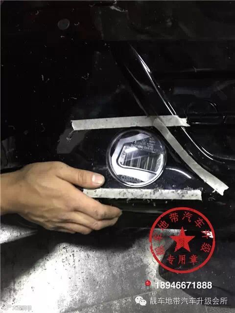 雾灯调校完毕,前大灯开始装车调试。原车卤素的灯具现在经过靓车地带的技师们完美的升级效果非凡,画龙点睛之作出自靓车地带。