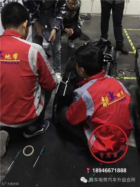 看我们的技师为了这个完美改装,亲自坐在地上精细的调校灯光照射范围,真是做到尽善尽美了!