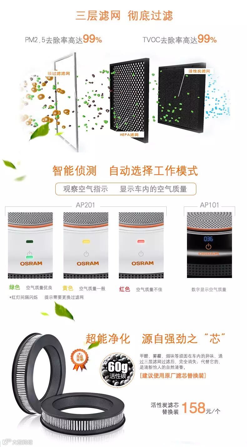 欧司朗车载净化器,绝无仅有的超重60克活性炭+独一无二的紫外和光媒触模块。选取最有效的净化材质,使用最强力的360度全方位净化,做到最短时间净化车里空气,带来清新行车体验。