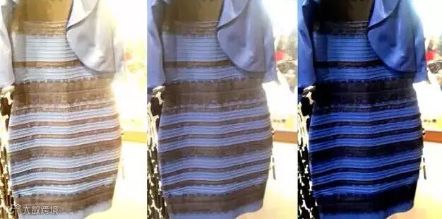 上图就是原照片(中)和经过不同的白平衡调整后呈现的白色-金色(左)或蓝色-黑色(右)两种形态。(图片来源于网络)