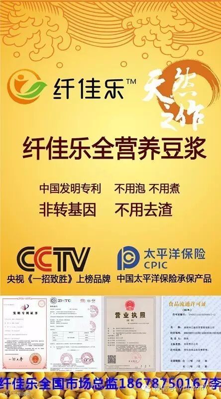 纤佳乐豆饮自上市以来以她的口感和安全性受到全国各地消费者的信赖和追捧,在各地酒店、学校热销的同时,公司又强力推出了更具市场竞争力的功能性豆饮,也就是食疗,因为食物是最好的药物,纤佳乐豆饮安全绿色无毒营养,她将彻底取代市面上令郎满目的保健品,一款黑豆葛根天贝豆饮就相当于十几种保健品功效的总和!!你喝豆饮的同时就能对亚健康进行有效的调理,可谓一举多得!更重要的是这款饮品对于每个家庭客户来讲都能接受得了,平民的价格、玉帝的效果。