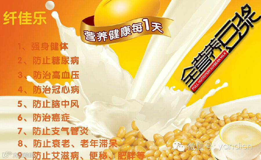 注:被誉为华人第六大发明的“纤佳乐全营养大豆”未来市场空间不可估量,鸡鸭鱼肉豆蛋奶是全国销量最大的产品,但是动物类食品已经没有安全性可言了,唯独全营养大豆一枝独秀,被誉为绿色牛奶植物肉,因此它的出现将彻底改变中国人的饮食结构。今天由炎帝公司独家销售该产品,即使1/10的国人来喝它,每年也是2000亿的销售额,如此巨大的市场空间您看懂了吗?