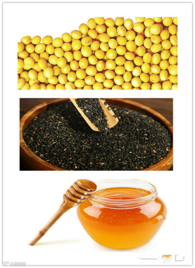 用料:黄豆,黑芝麻,蜂蜜40克,水