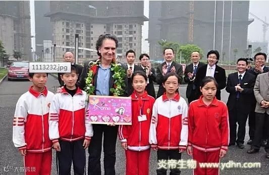 当日上午,彼得巴菲特先生下飞机后,即和熊晓鸽先生一道驱车前往株洲生物科技标杆性企业——炎帝生物参观。在这里,贵宾们受到上海三湘投资控股有限公司董事长黄辉、铁科院院长万友根、上海三湘投资控股有限公司常务副总裁厉农帆、炎帝生物董事长黄佳林、董事CEO钟建和等领导及“百年树人”受助学生代表的热烈欢迎。受助学生代表现场向远自美国而来的客人献上了由心型叠成的“Welcome, Peter Buffett! ”,表达了株洲炎陵“百年树人”受助学童给予彼得巴菲特先生的纯真祝福。