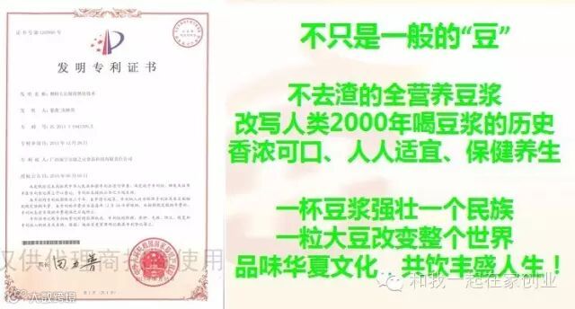 7、更容易推广:(我们国家1996年的时候就推广过豆浆,但是因为里面有害成分没有推广成功,今天我们掌握了核心的技术,解决了这一大难题,谈一个客户几百、几千、几万的终端消费群体就出来了,并且每天自动自发的喝我们豆浆)。