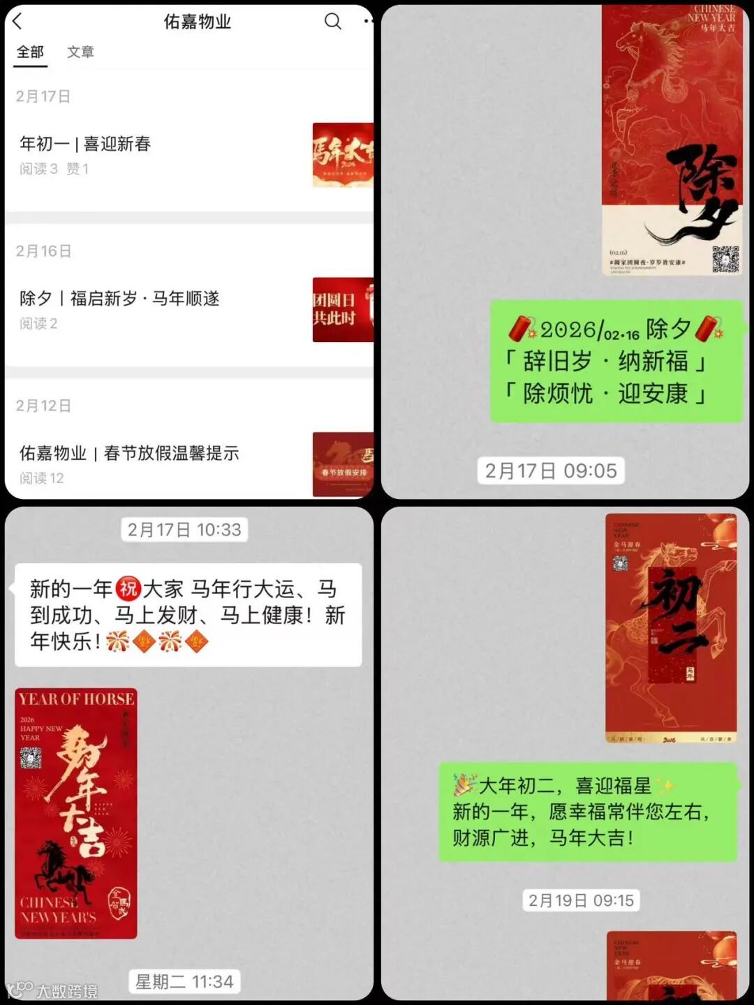 新春甫至,万象更新。2月,我们喜迎农历新年。为确保节日期间大厦的安全、稳定与洁净,同时保障节后客户顺利复工,佑嘉物业在履行日常服务职责的基础上,将工作重心聚焦于“春节专项保障”。安保、工程、清洁、客服四大部门协同联动,周密部署,全力落实各项值守、巡检、维护与服务工作,圆满完成了春节期间的安全守护与运行保障任务。