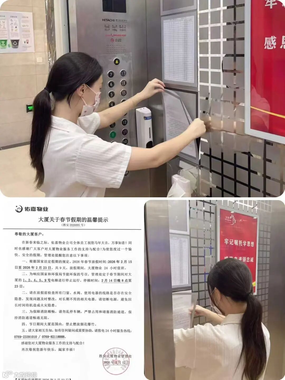 春节前夕,工程部为大厦悬挂起红灯笼,装点上崭新的迎新横幅,让整个大厦提前披上了节日盛装,洋溢着浓浓的年味。