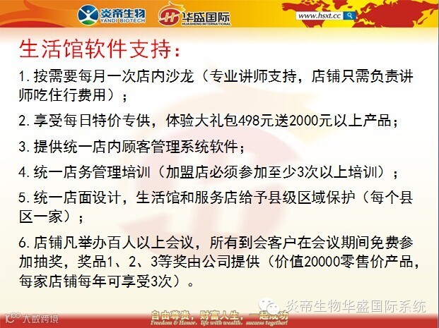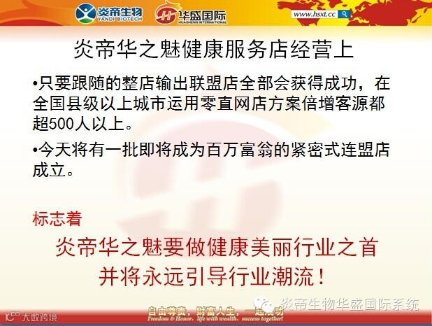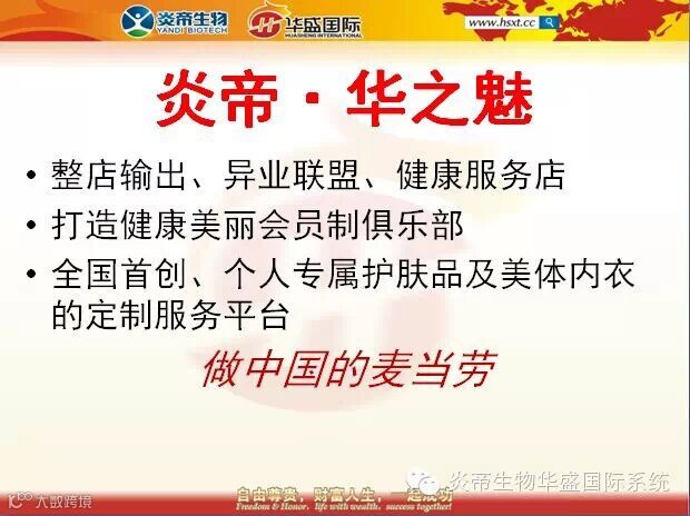 高端、大气、上档次的店铺装修,一流的产品,100%赚钱的店铺连锁经营模式,系统化的全方位支持,上市公司背景,强大政府关系--【华之魅,你值得拥有】。