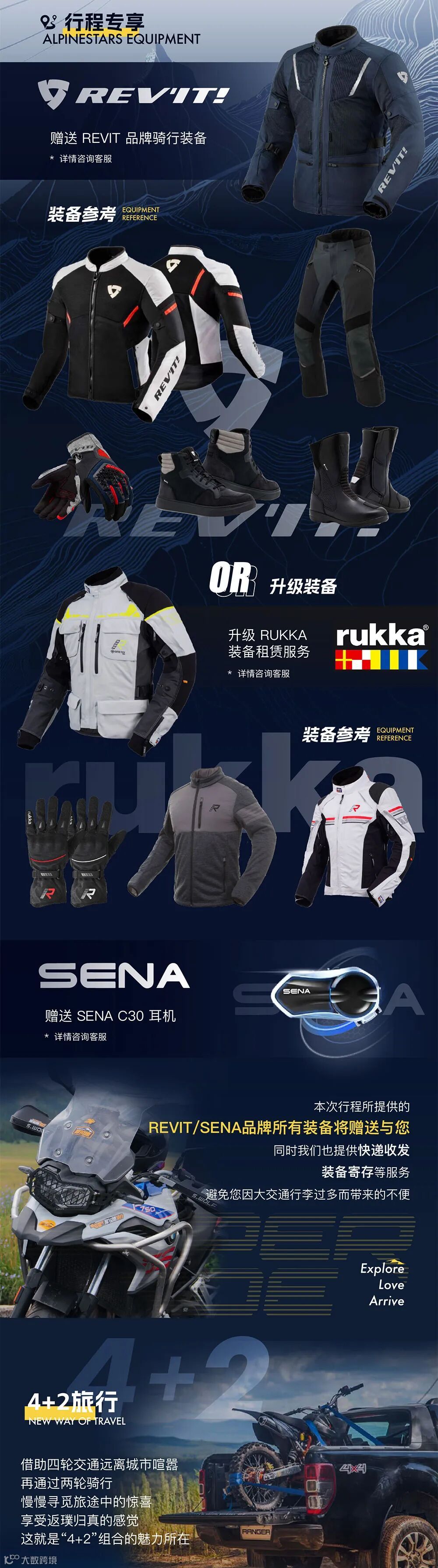 行程将采用4+2的全新出行方式,全程四轮保障跟随出行,你也可以携带你的家人乘坐四轮保障车一起跟你出行啦!