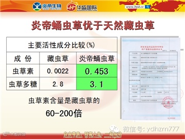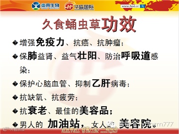 虫草素(唯一的核苷类天然抗癌抗生素)、虫草酸、虫草多糖、腺苷、 SOD、不饱和脂肪酸。