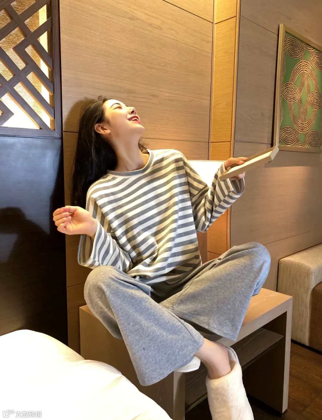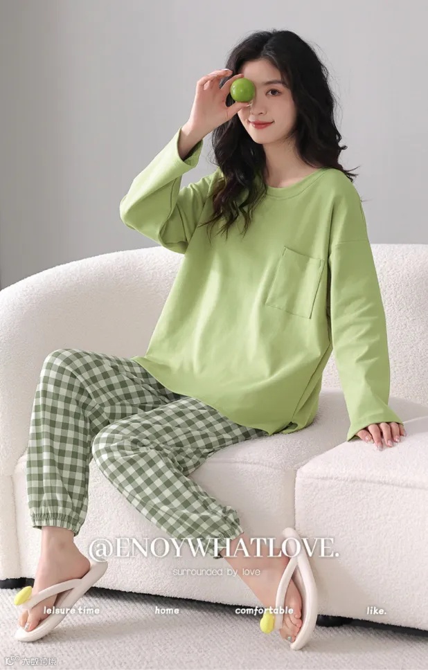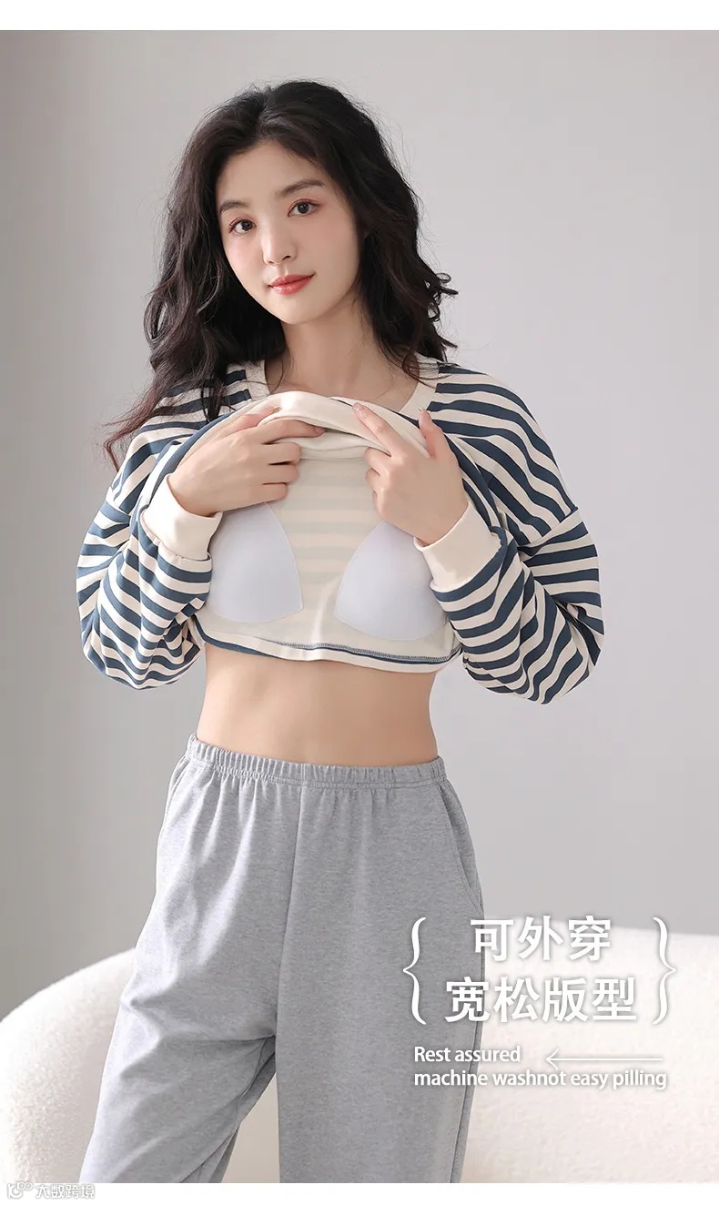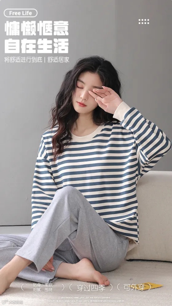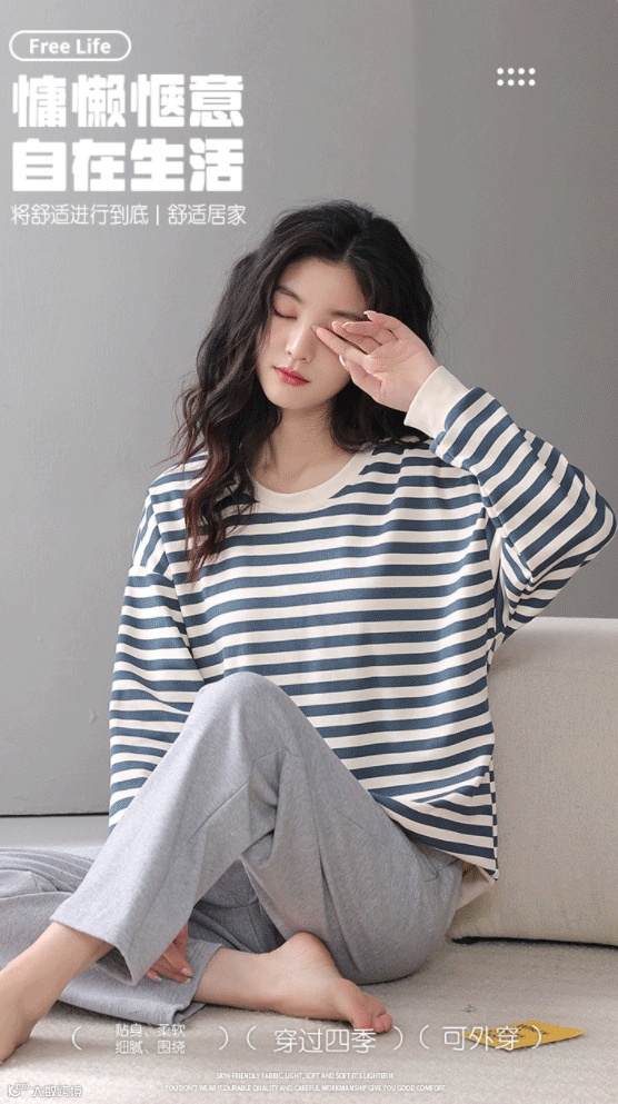 女士睡衣带胸~垫防凸点家居服套装 可外穿懒人家居套装【232-11】