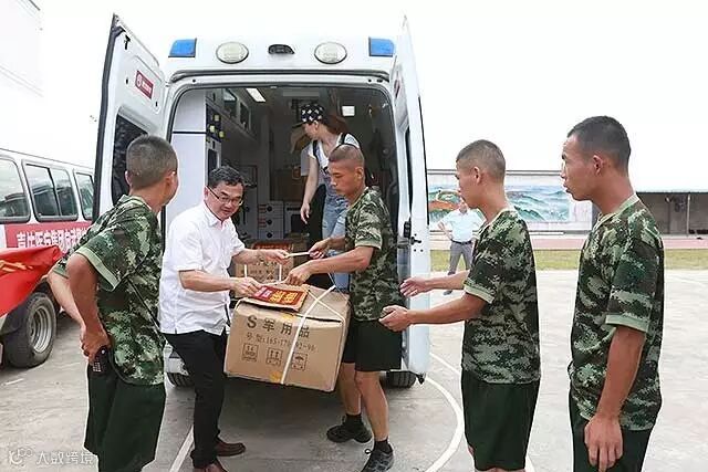 江西嘉佑医疗集团副总周强为武警官兵们送上慰问品
