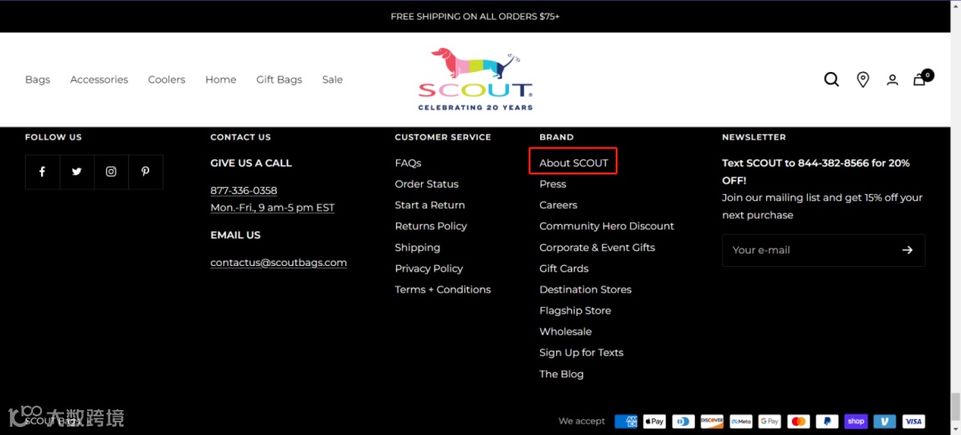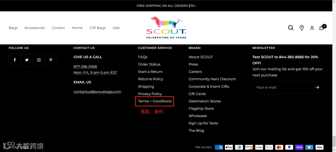 条款的入口一般在官网最下方导航栏