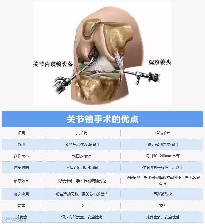 据介绍,关节镜是一种只有筷子粗细的医疗器械,将这根细管插入关节内部,关节内部的结构便会在监视器上显示出来,可以直接观察到关节内部的结构。关节镜不仅用于疾病的诊断,而且广泛用于关节疾病的治疗。关节镜用于诊断,相当于“把医生的眼睛放入关节内”,眼见为实。通过关节镜可以仔细地观察关节内的情况,直接准确地发现病变的部位。同时关节镜具有放大效应,因此比传统的肉眼观察更加准确;关节镜用于治疗,相当于“把医生的手放入关节内”,治疗更加精准便捷。在发现病变之后可以立即在关节镜监视下进行手术解决病灶,是一种有的放矢的全面检查和手术治疗的方式。关节镜微创诊疗技术使骨科医生摆脱了肉眼观察、操作困难的局面。因其重大的临床意义,被誉为骨科领域内的三大进展之一。