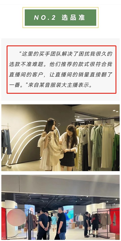 根据选品中心的负责人介绍,这样做的目的是让这里的款随时紧跟全国潮流趋势。让所有来选品中心的客户,能够选到“一手款、精选款、最新款”。