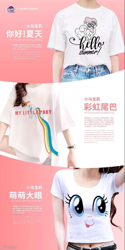 依链选品中心除了款式精选外,还为客户提供了独家优势货源。当下最受年轻人追捧的联名系列,漫威、布鲁兔、大富翁、小马宝莉等多款经典IP联名的服装都能在这里找到。