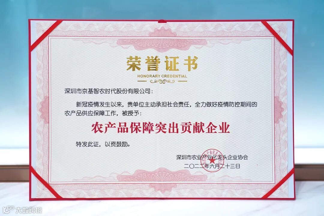 为打造粤港澳大湾区高质量“肉篮子”,京基智农进一步整合猪肉产业上下游资源,构建从农场到餐桌的全程可追溯产业链,春节期间,承担了深圳30%的猪肉供给;疫情期间,作为首批疫情防控生活物资保障企业,加大生产力度,畅通供应链条,力保市民生活所需。旗下项目相继获评“国家级生猪产能调控基地”“广东省农产品出口示范基地”“深圳市菜篮子基地”“珠海市菜篮子基地”等荣誉,保供给、保民生的社会责任担当屡受官方认可。