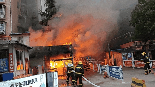 7月7日,贵州贵阳观山湖区阳关小区一早餐店突发大火,现场火势凶猛且正在向周边商铺蔓延,数分钟后,成功将现场火势扑灭。据了解,火灾事故原因为电气线路故障。
