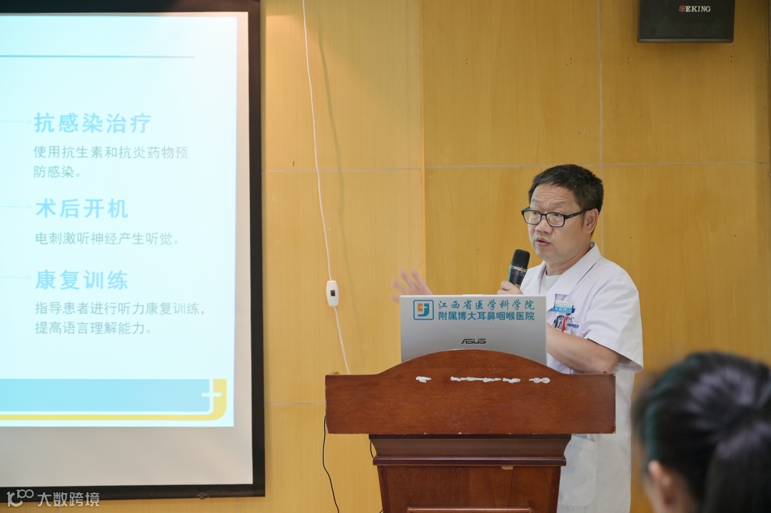 江西省医学科学院附属博大耳鼻咽喉医院门诊部主任、党支部书记李克巡主任介绍了人工耳蜗植入手术的条件、过程和术后相关注意事项,他表示医院会对“耳启新声”人工耳蜗援助计划提供全面的技术支持和保障。
