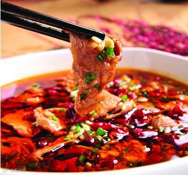 10.在煮好的肉上撒少许香葱段,将烧热的油和花椒藤椒干红辣椒倒在上面就可以啦!