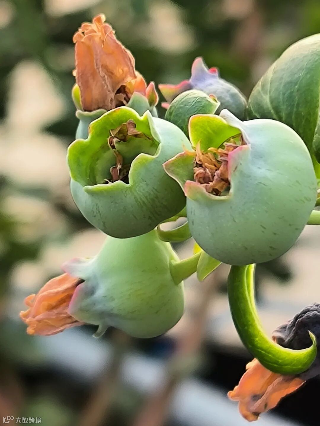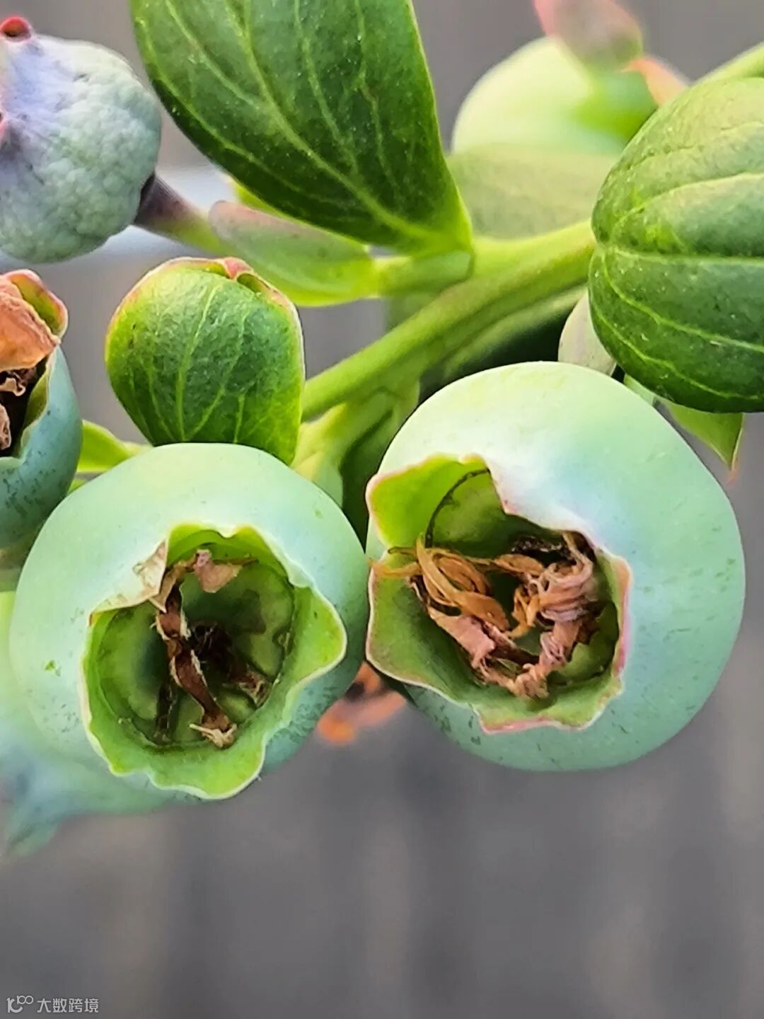 稚绿可爱、胖嘟嘟的蓝莓幼果